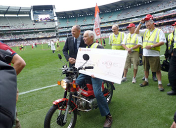 The adventure of a lifetime took the men 11 days to complete, with the group experiencing sleepless nights, police escorts, numerous media stops and huge support all along the way. The ride ended in style at Melbourne’s iconic MCG, where the men took a rest to watch a game, making an honorary lap of the stadium during half time, when the cheque was presented to PCFA to huge cheers from the crowds.